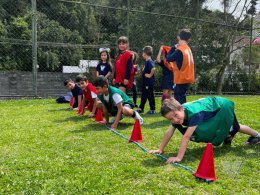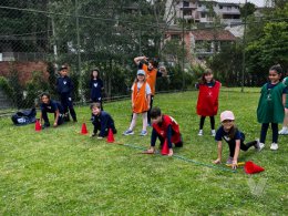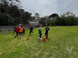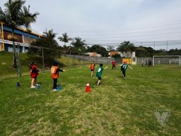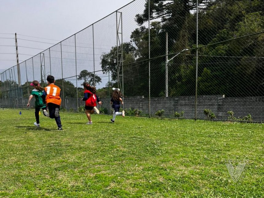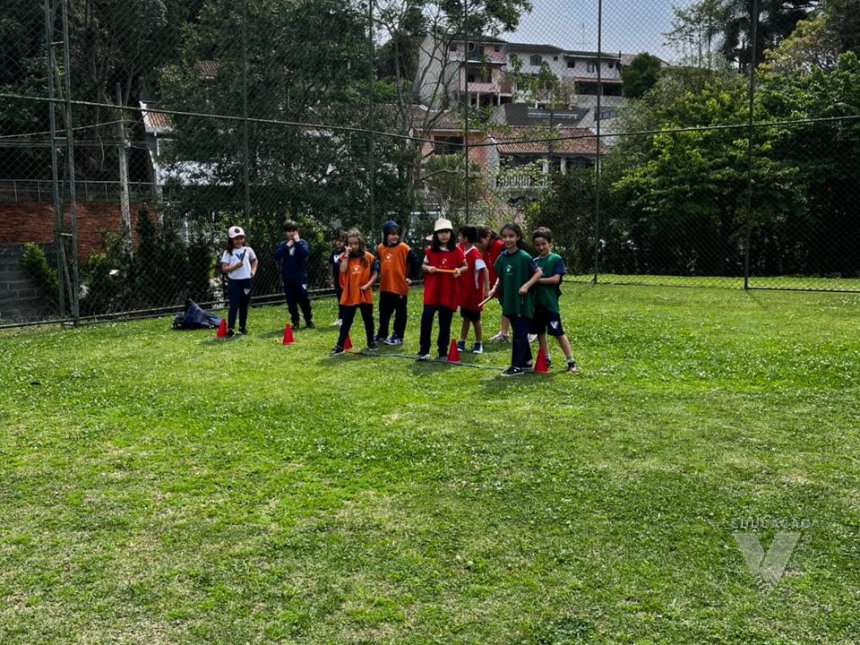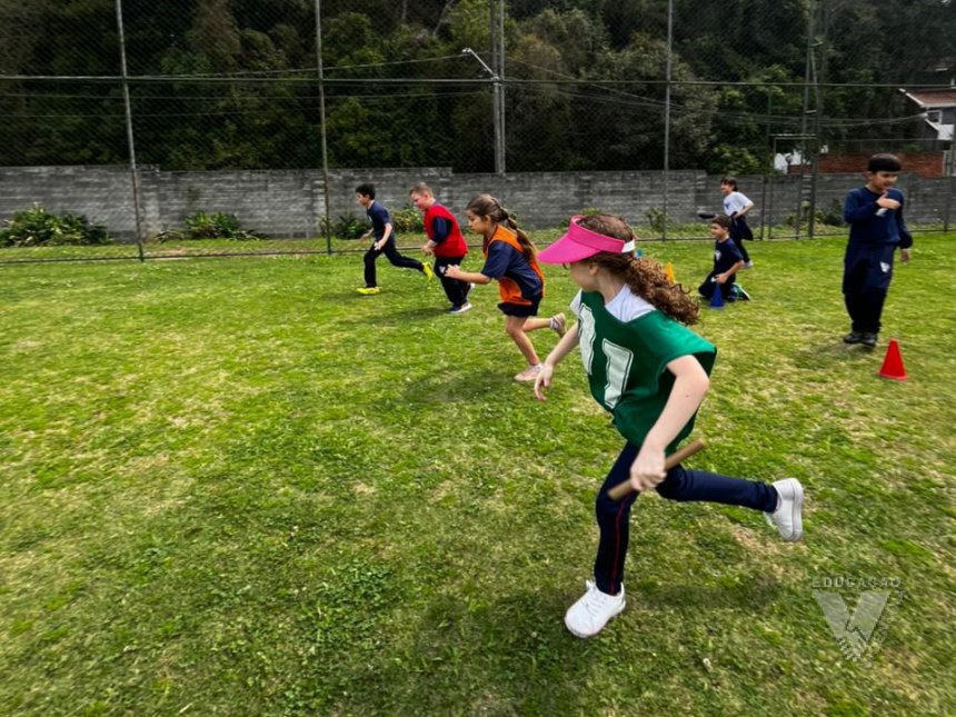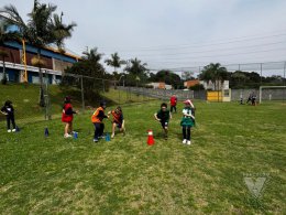 Os estudantes do 2º ano C, durante as aulas de Educação Física, aprenderam mais sobre o atletismo e praticaram a modalidade no campo de grama do Colégio.