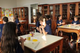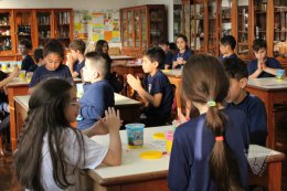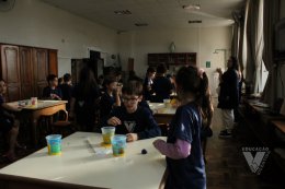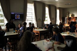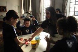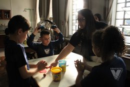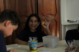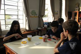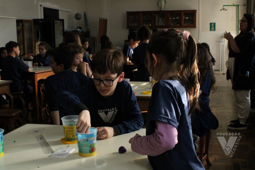 Pensando nisso, os estudantes do 3º ano C criaram, utilizando massinha de modelar, o nosso planeta Terra que, ao cortar ao meio, foi possível observar as três camadas!