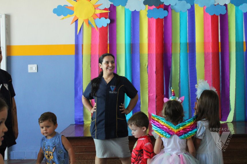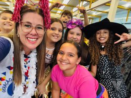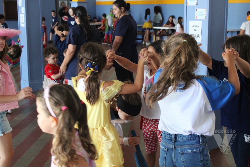 Depois, foi só alegria: fantasias coloriram os corredores do colégio e o dia ganhou ainda mais vida com um animado bailinho de carnaval, celebrando a cultura, o aprendizado e a infância com muita diversão.