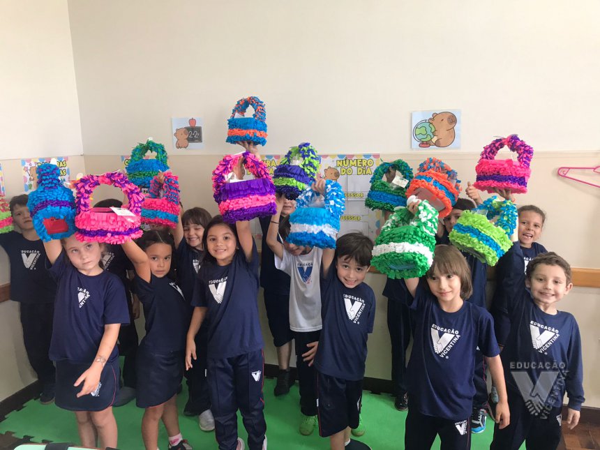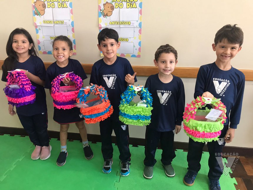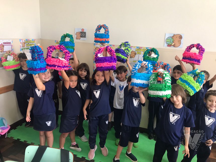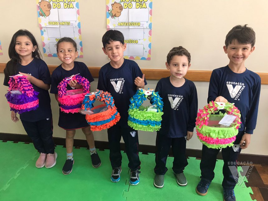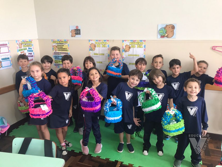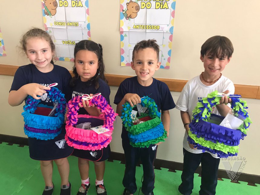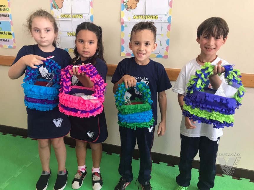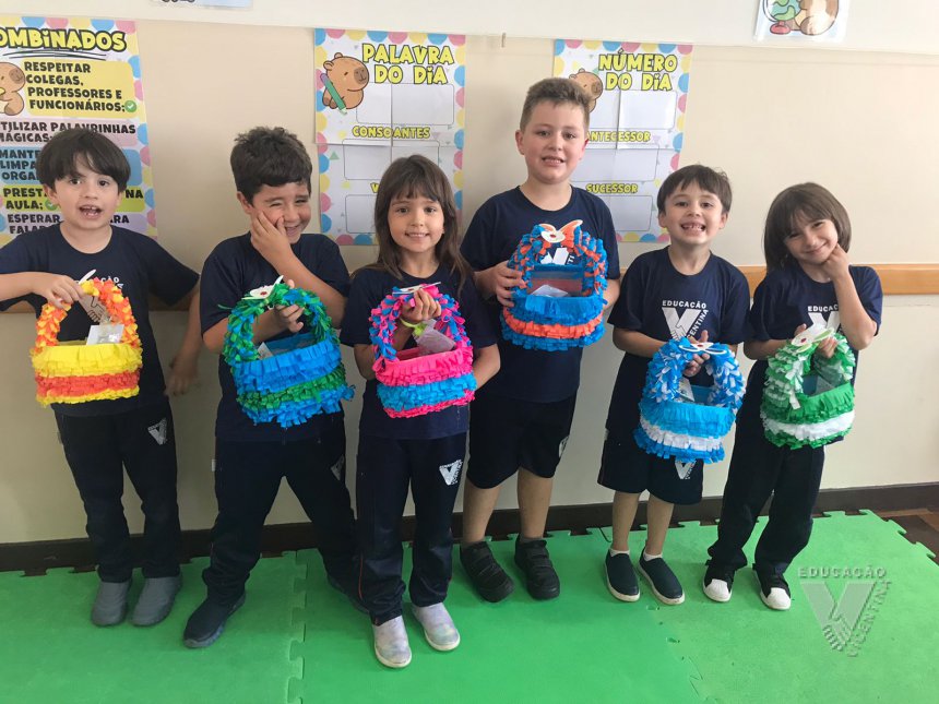 Para celebrar a Páscoa, os estudantes do 1º ano B e C confeccionaram máscaras do coelhinho da Páscoa e receberam das professoras, uma linda cesta para comemorar esta data tão importante com a família.
