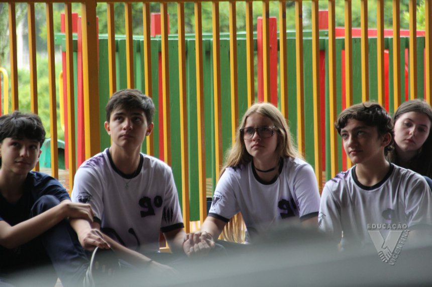 Na última segunda-feira, nossos estudantes do 9º ano participaram do Encontro de Vivência da Pastoral Escolar Vicentina, um momento especial preparado para marcar o encerramento do ciclo do Ensino Fundamental.