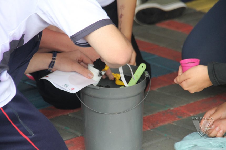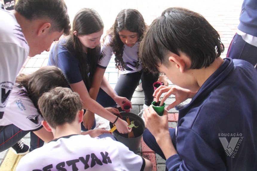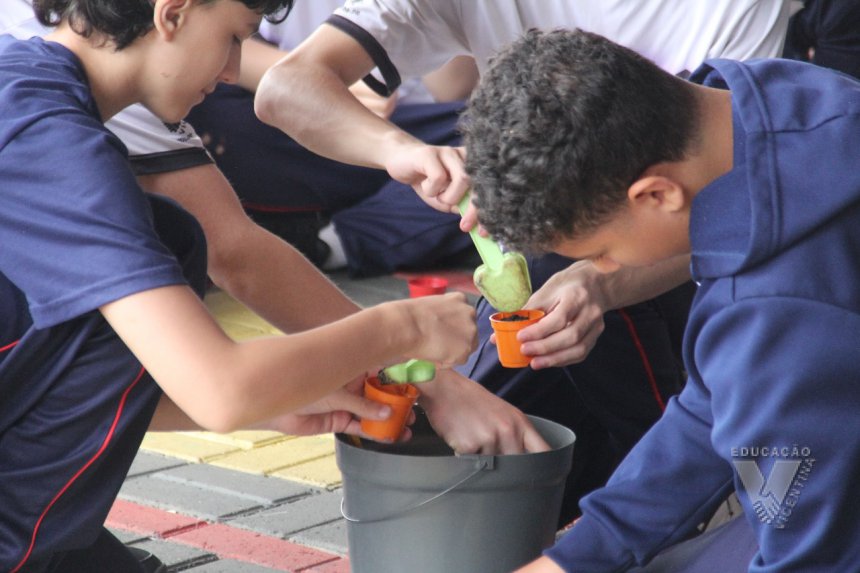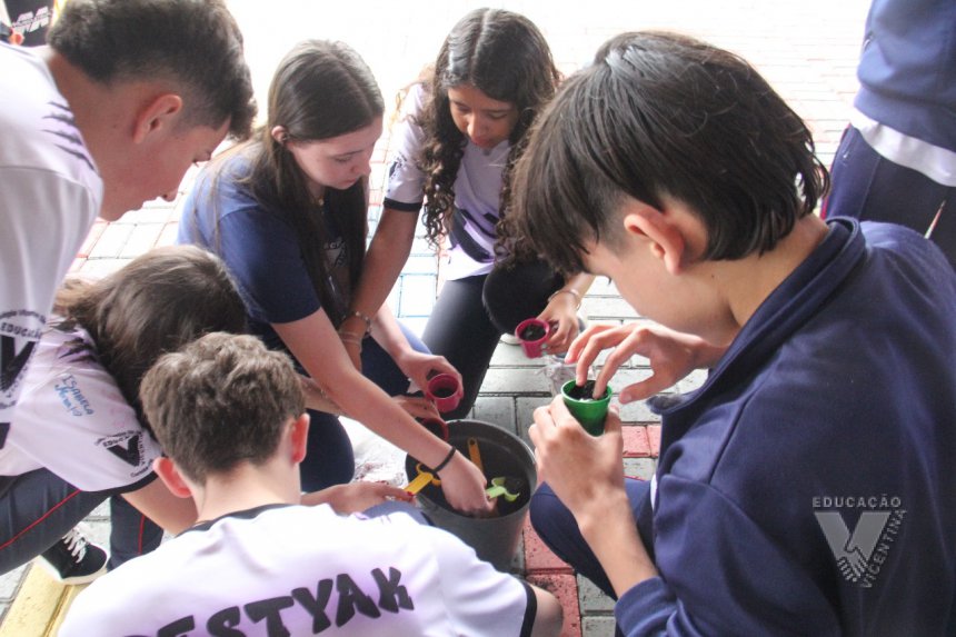 Para simbolizar esse aprendizado, cada estudante plantou uma semente de girassol, gesto simples, mas cheio de sentido sobre cuidado, paciência e esperança.