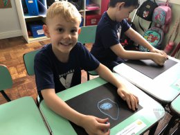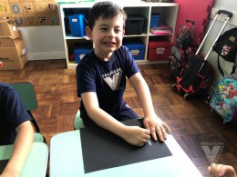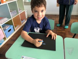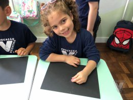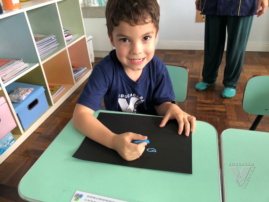 Pensando nisso, os estudantes do Nível 4C realizaram lindas pinturas utilizando giz de quadro molhado!