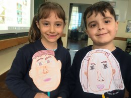 Após observar o colega, cada um desenhou o rosto do amigo, com os traços e características.