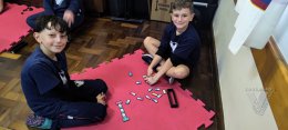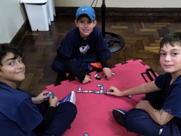 Com o objetivo de envolver crianças em um jogo que estimule a percepção musical, os estudantes do 4º ano C praticaram o Dominó Musical durante as aulas de Musicalização.