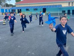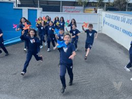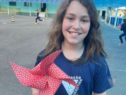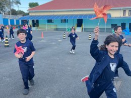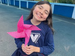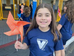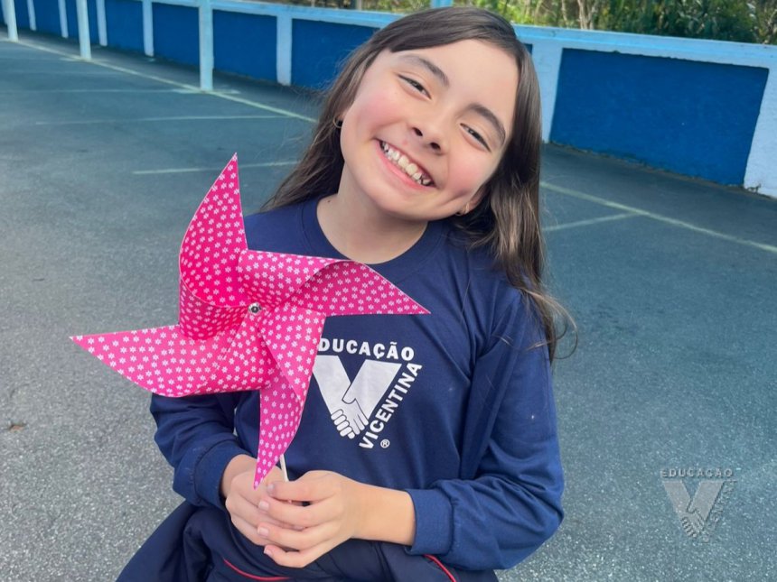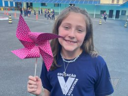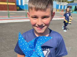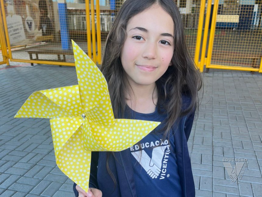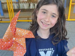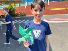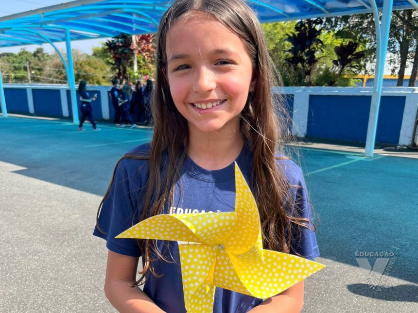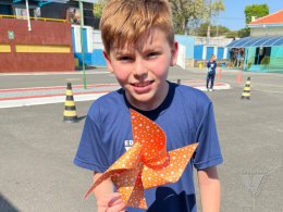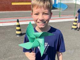 Os estudantes do 4º ano B estão iniciando pesquisas sobre o tema a ser abordado no ECO Moviarte: Energia Eólica. Pensando nisso, cada um confeccionou cata-ventos e observaram como ele funciona.