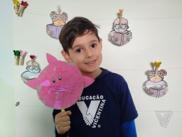 Pensando nisso, os estudantes do Nível 5B confeccionaram seus próprios personagens, utilizando materiais alternativos.
