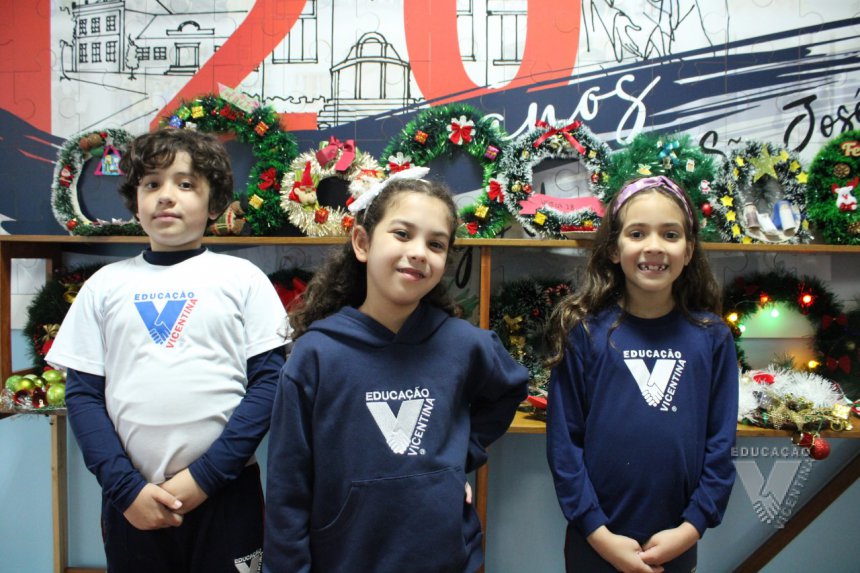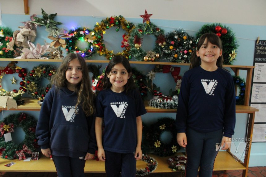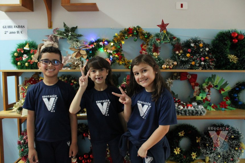 Pensando nisso, os estudantes do 2º ano B e C, juntamente com suas famílias, confeccionaram lindas guirlandas de Natal para enfeitar o corredor do Colégio!