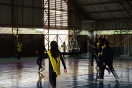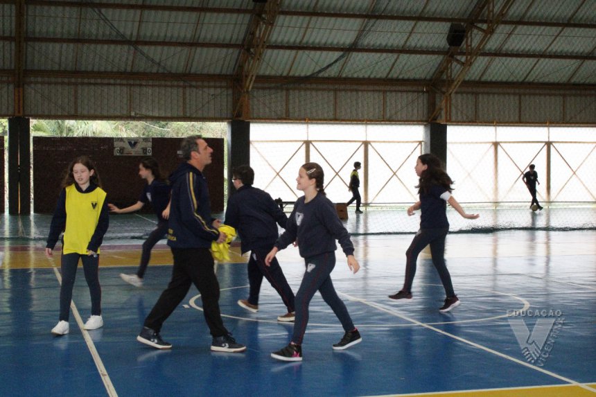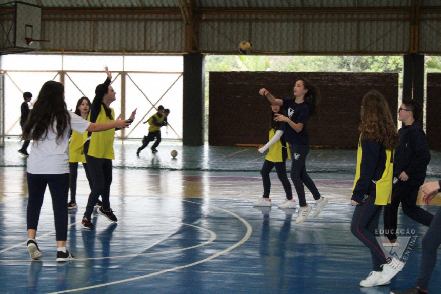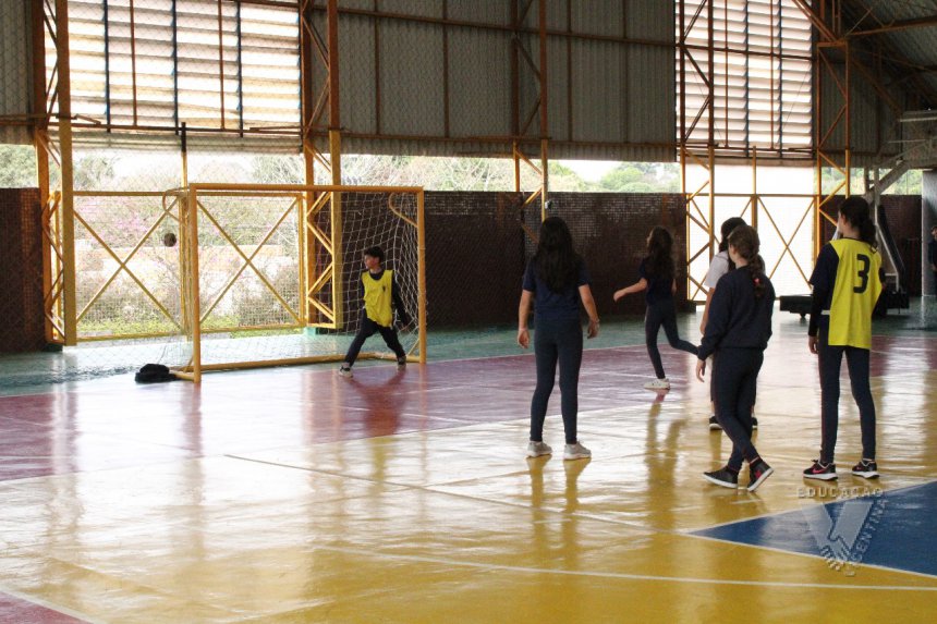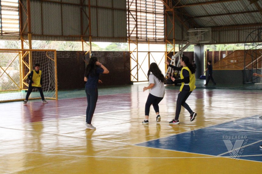 Pensando nisso, os estudantes do 6º ano B praticaram handebol durante a aula de Educação Física, aprendendo as regras do jogo.