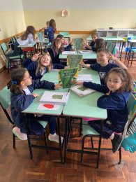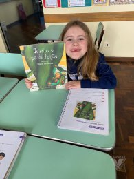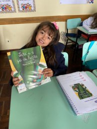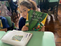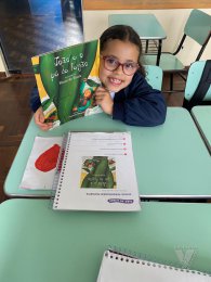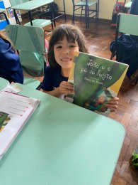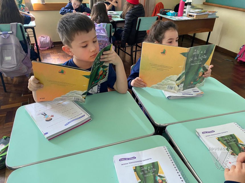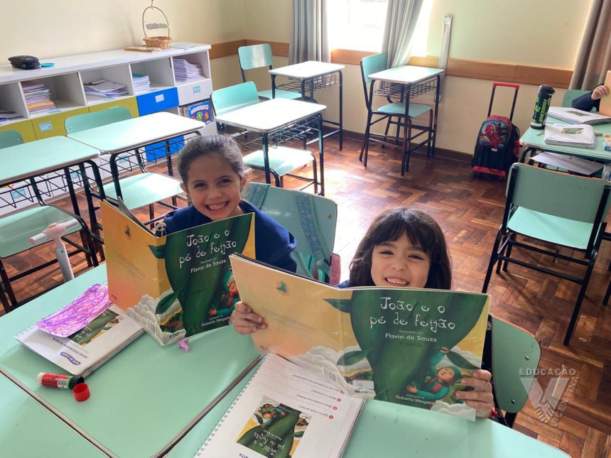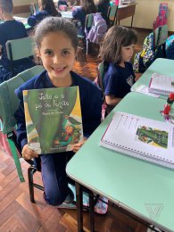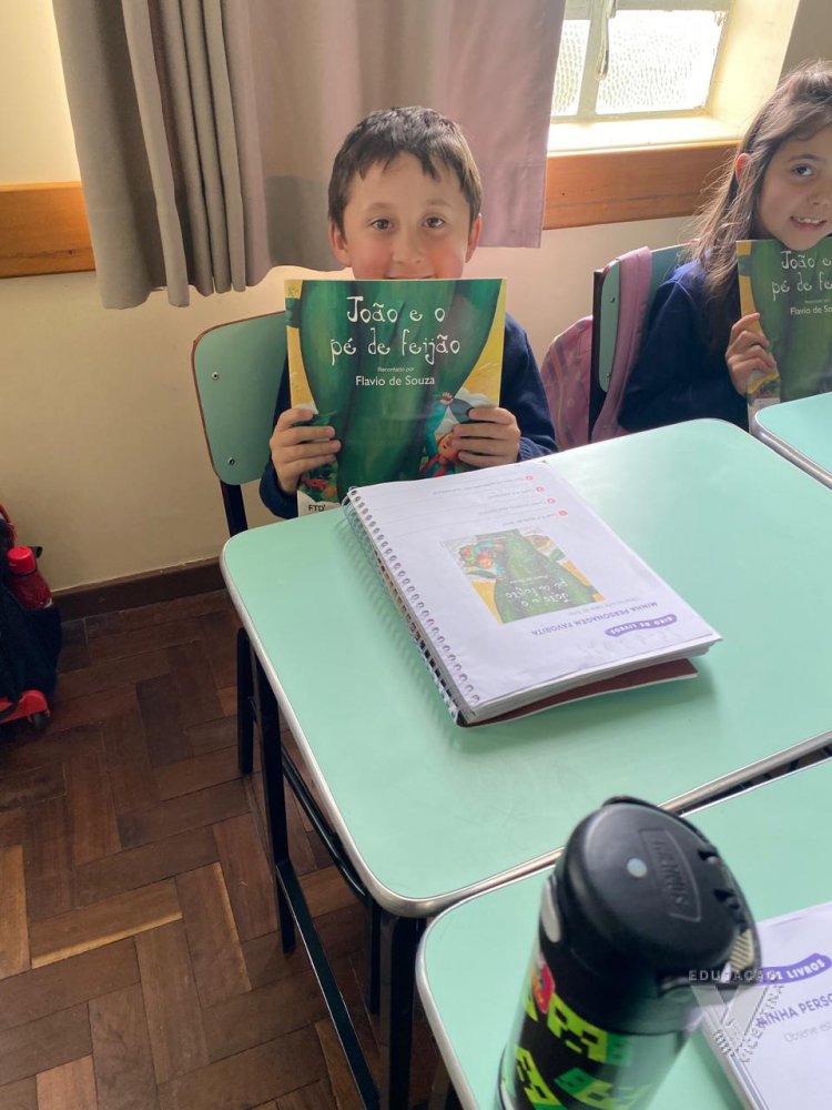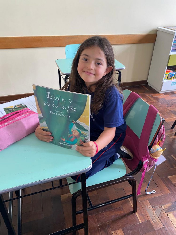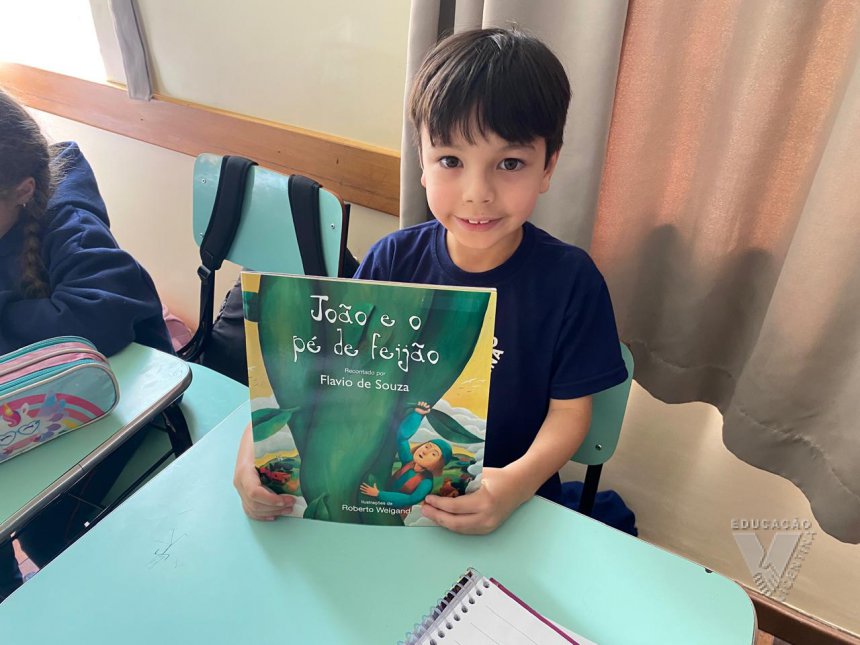 Pensando nisso, os estudantes do 1º ano B realizaram a leitura de "João e o Pé de Feijão", desenvolvendo o raciocínio, a imaginação e o pensamento crítico das crianças ao explorar temas como coragem, ética e o valor do trabalho.