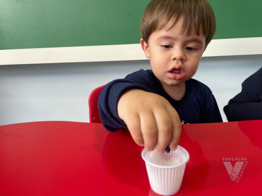 Com base na história de João e o Pé de Feijão, os estudantes do Nível 2 C plantaram seus próprios feijõezinhos, utilizando um copo e algodão!