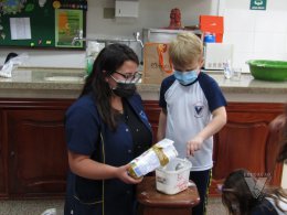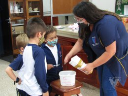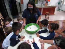 Os estudantes do Nível V B aprenderam a receita de massinha caseira!