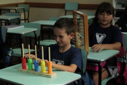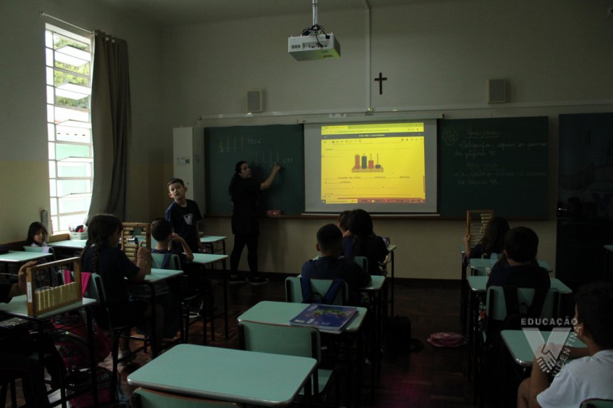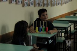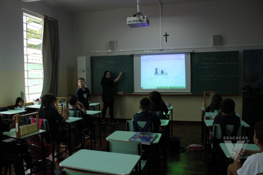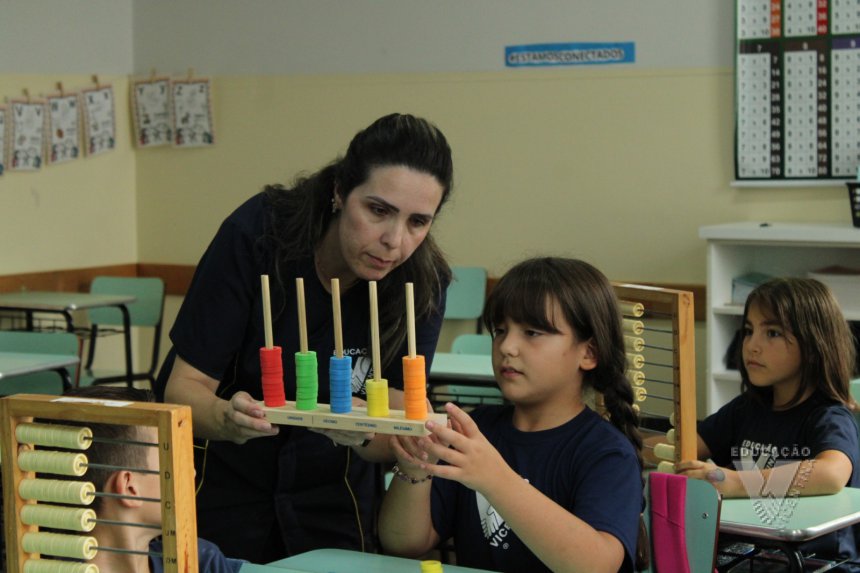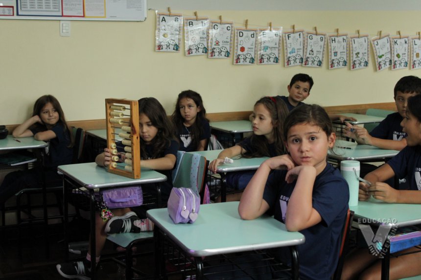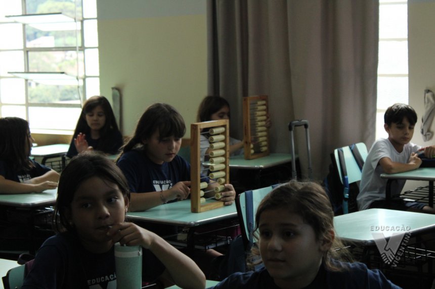 Os estudantes do 3º ano C exploraram o sistema de numeração decimal de um jeito concreto e visual. Utilizaram o Material Dourado e o Ábaco para transformar conceitos abstratos em algo que os alunos pudessem tocar e sentir.