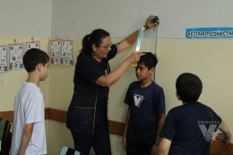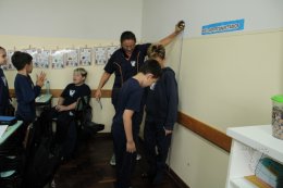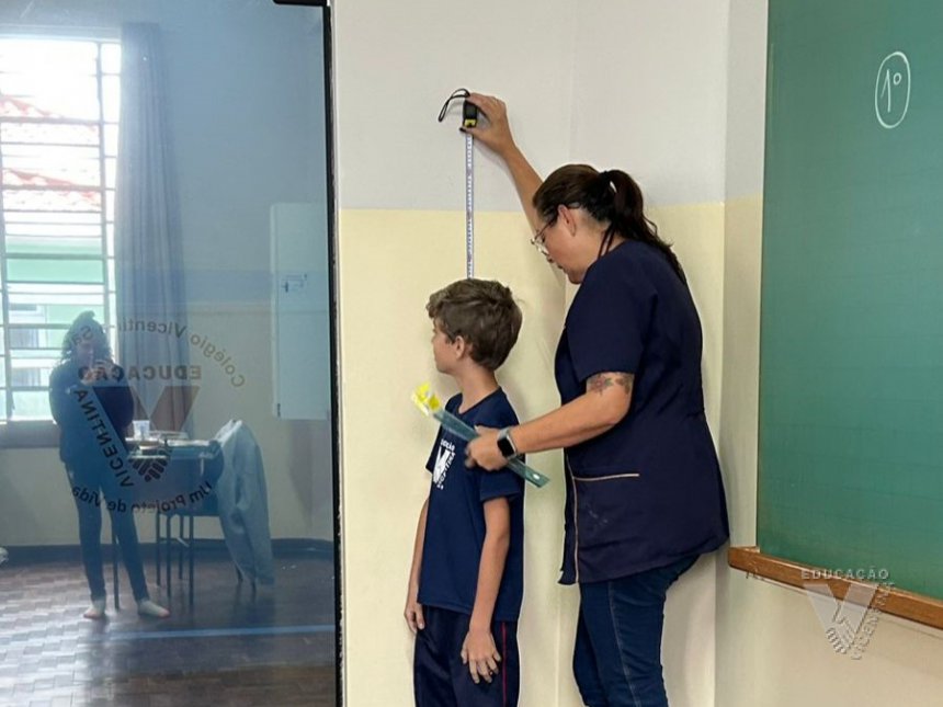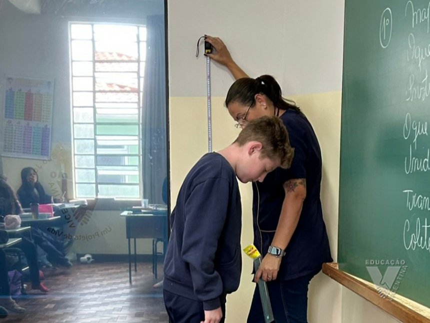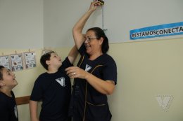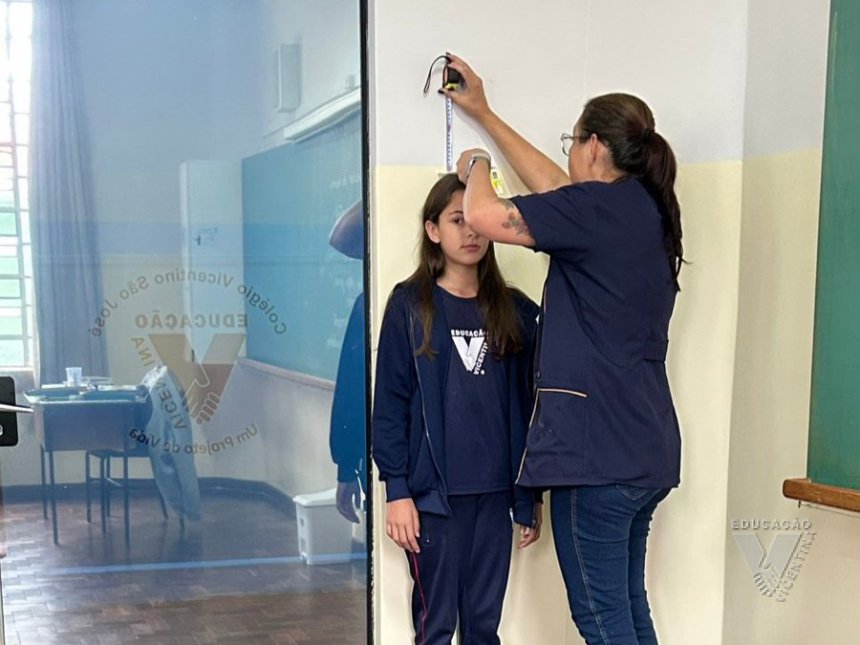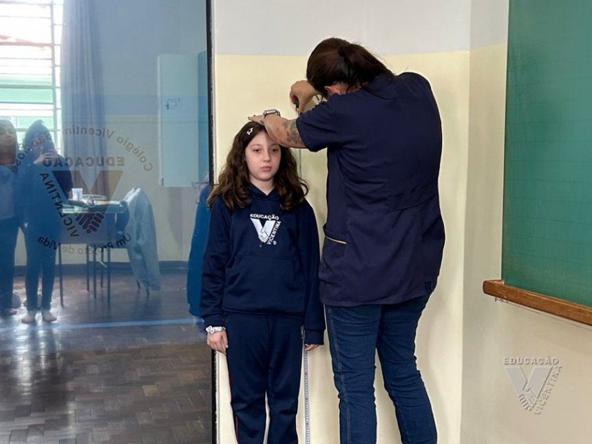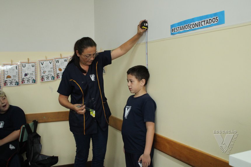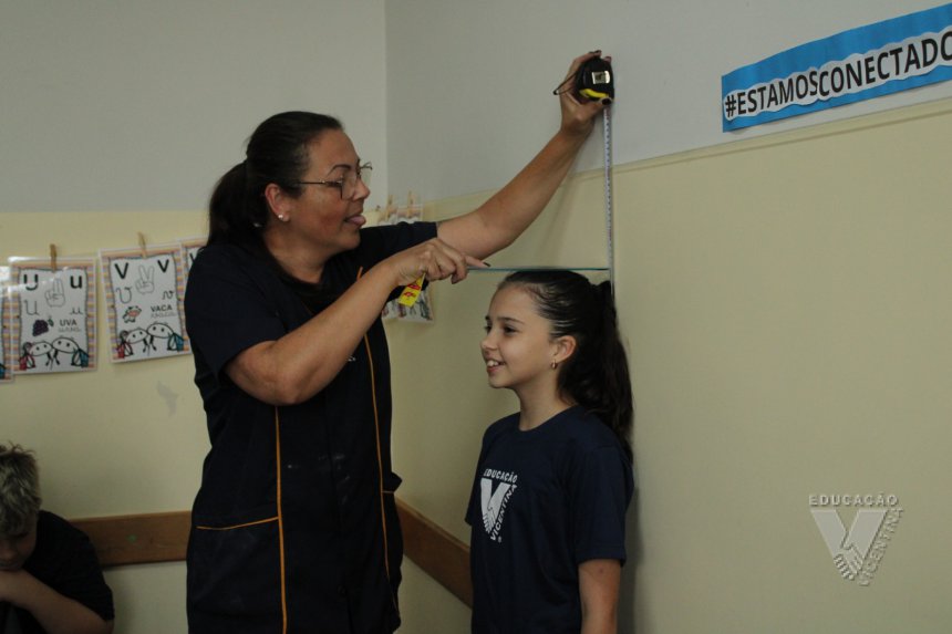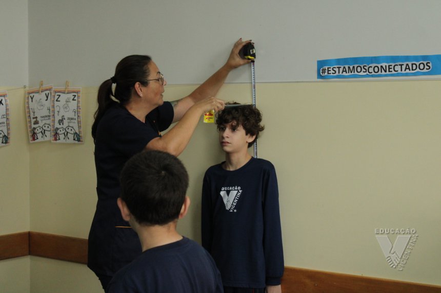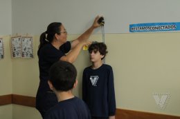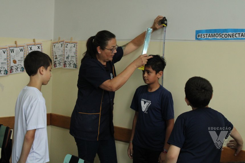 Pensando nisso e como uma forma de aprender na prática as medidas, os estudantes do 6º ano A e B realizaram suas próprias medidas de massa e de comprimento, realizando conversões de gramas para quilos e de centímetros para metros.