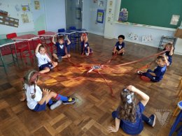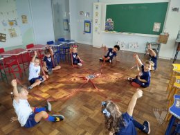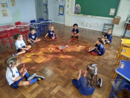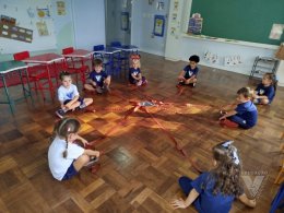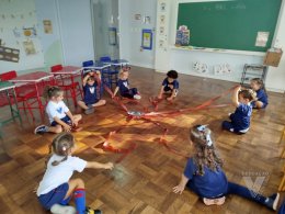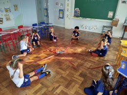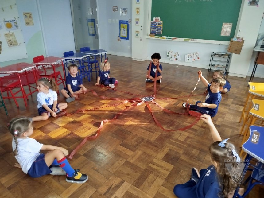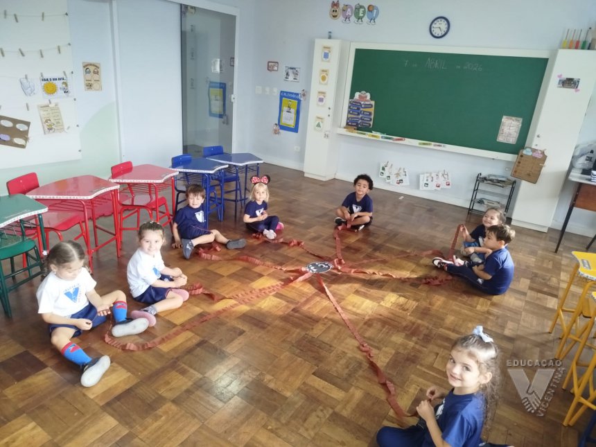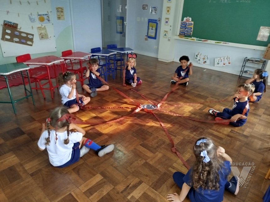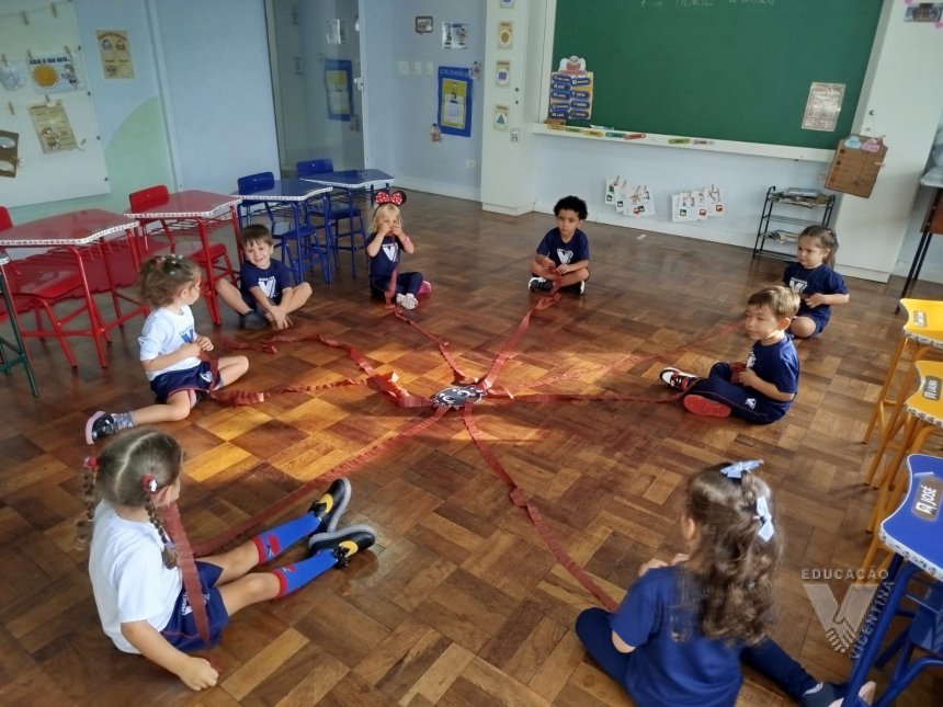 Os estudantes do Nível 3B realizaram uma dinâmica divertida em sala de aula com a Dona Aranha!