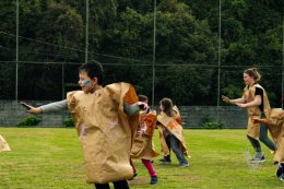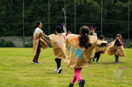 Pensando nisso, os estudantes do Nível 4C trabalharam com a tinta de uma forma diferente e divertida! Misturaram a brincadeira de pega-pega com as cores das tintas, e assim nasceu o pega-pega colorido!
