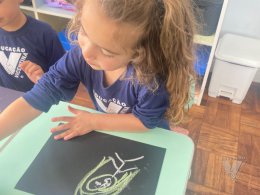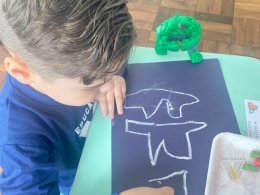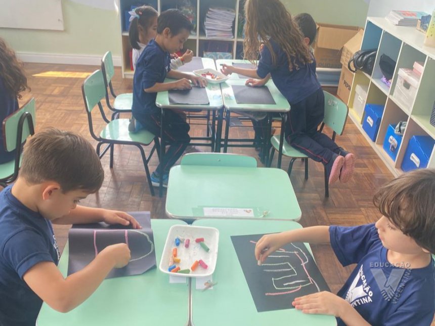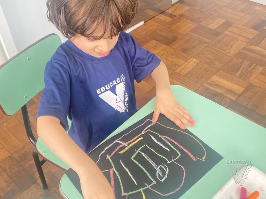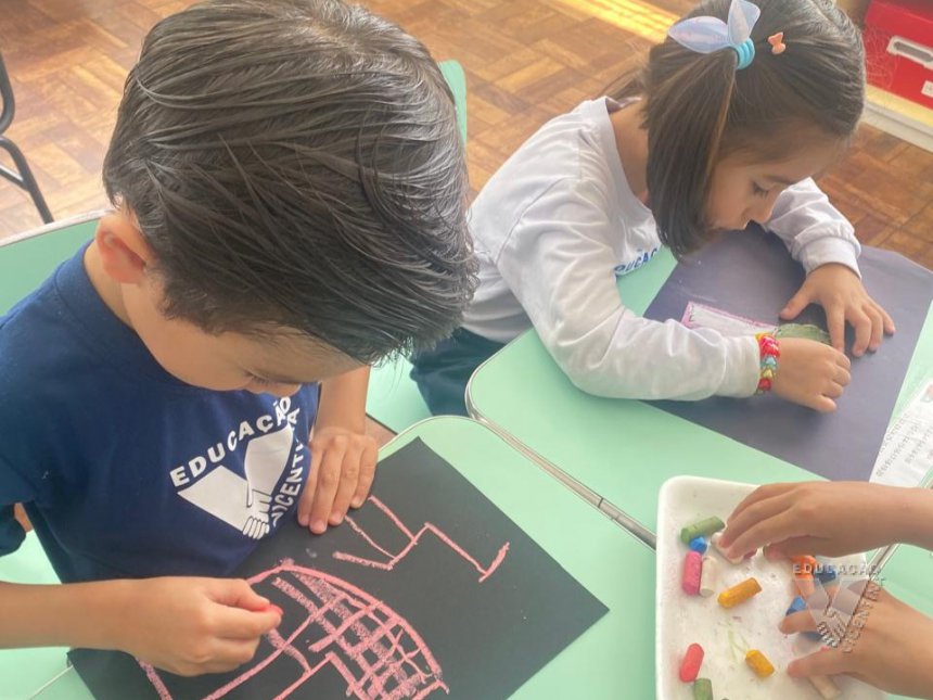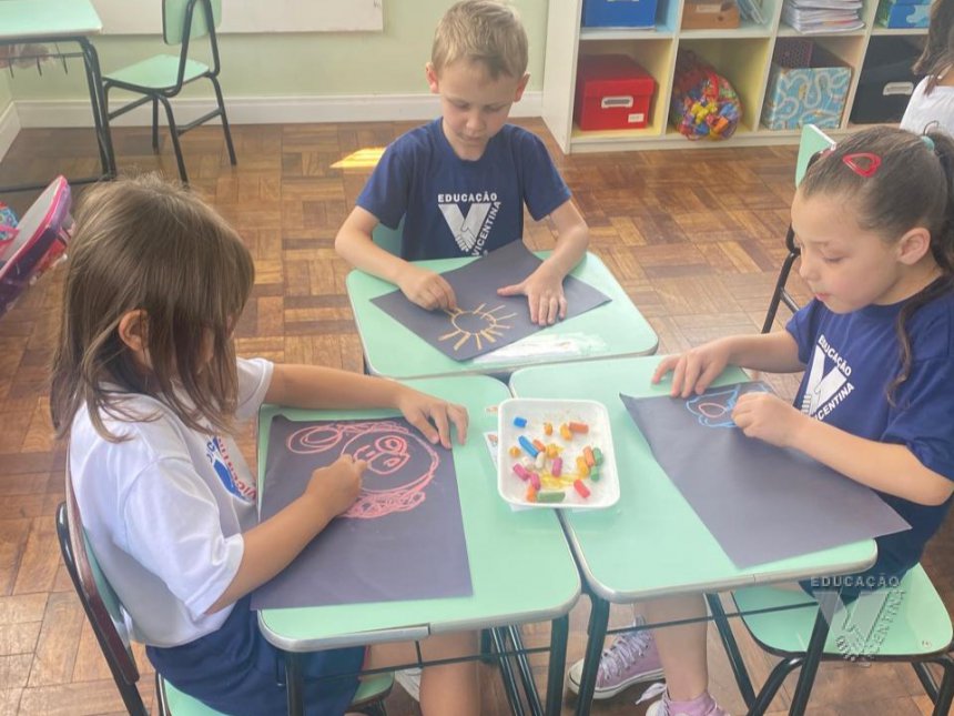 Pensando nisso, os estudantes do Nível 4C realizaram lindas pinturas utilizando giz de quadro molhado!