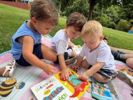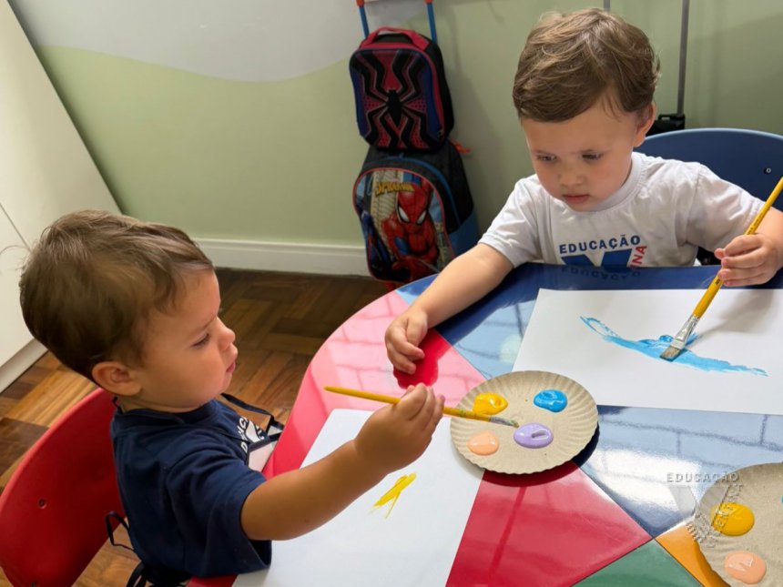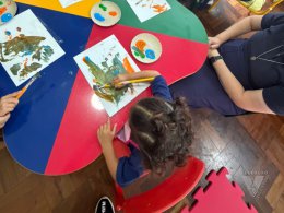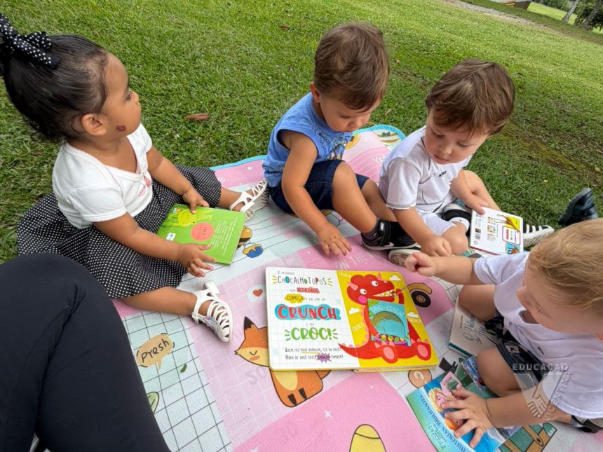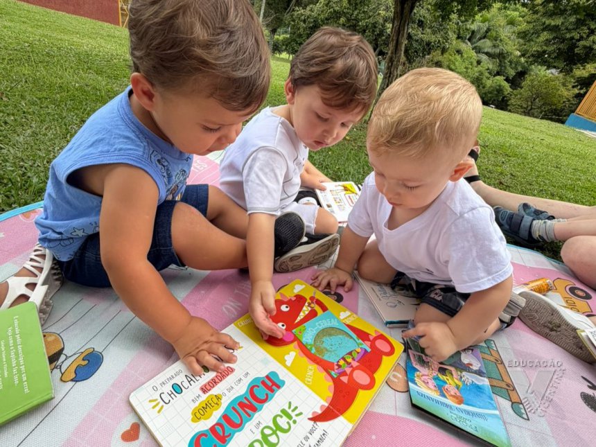 Entre atividades com tinta, que estimularam a criatividade e os sentidos, e um delicioso piquenique literário, nossos pequenos puderam explorar livros adequados para a idade, experimentar texturas, cores e viver o prazer do primeiro contato com a leitura.