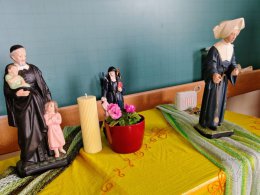 Cada grupo leu uma breve história de santos vicentinos, mergulhando nas trajetórias inspiradoras desses beatos. Após a leitura, compartilharam com os colegas o legado de vida e fé de cada um, fortalecendo nosso carisma vicentino e a missão de servir ao próximo.