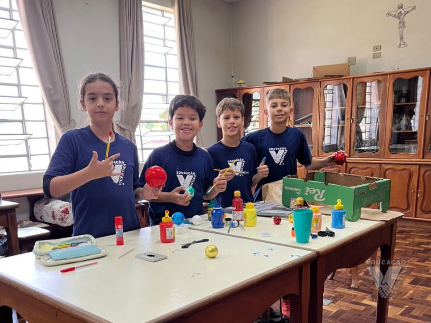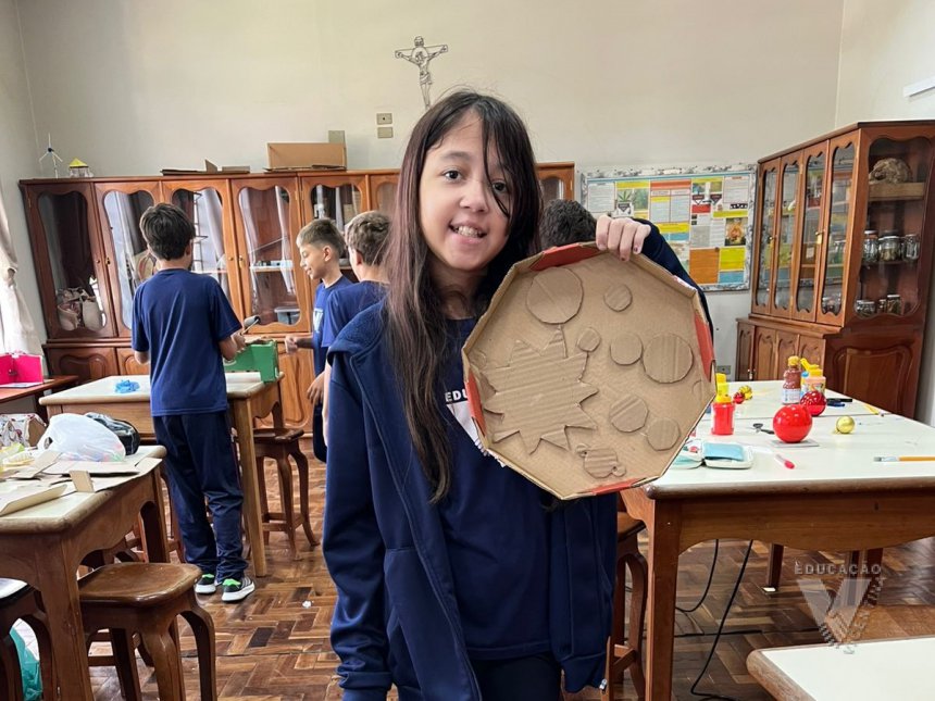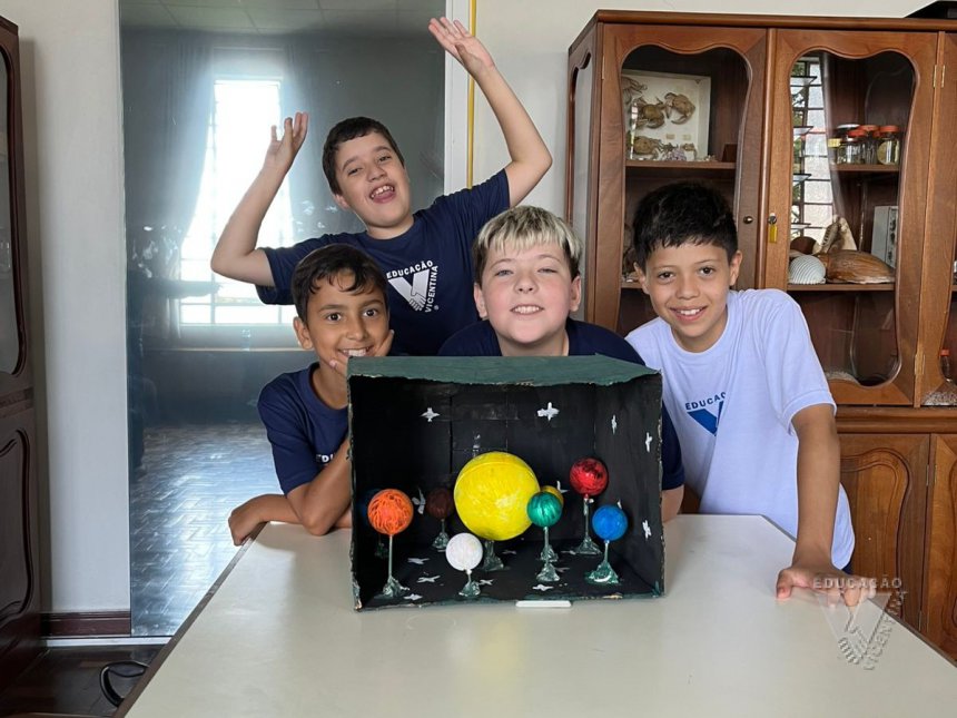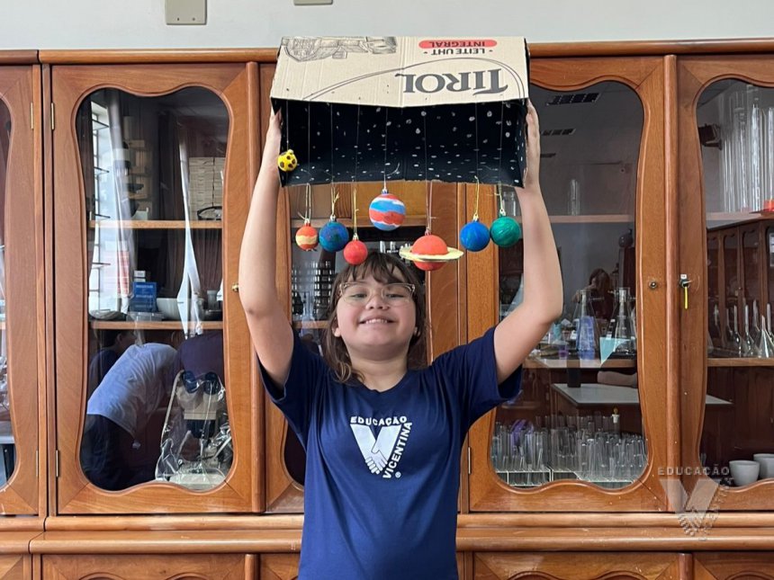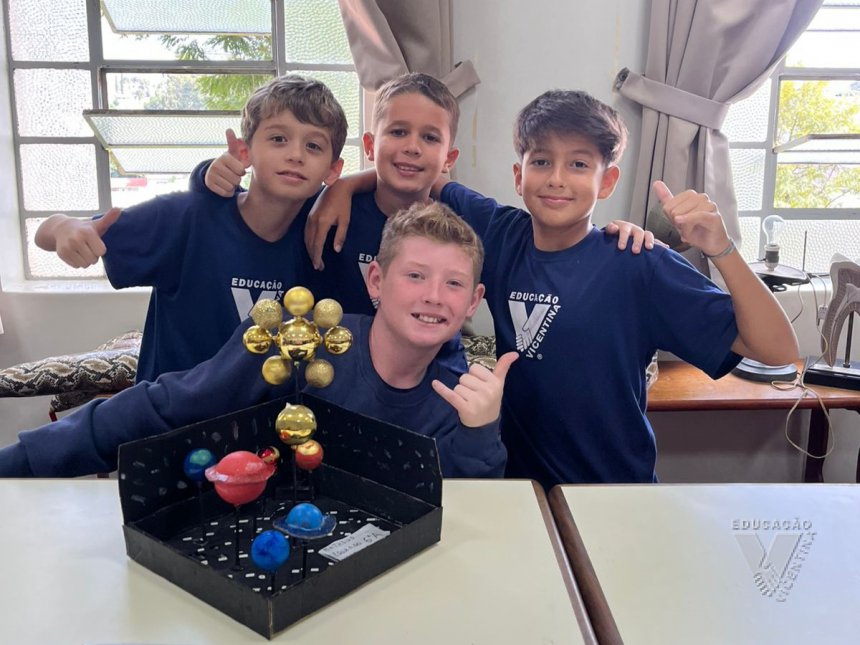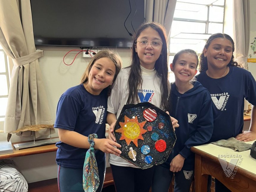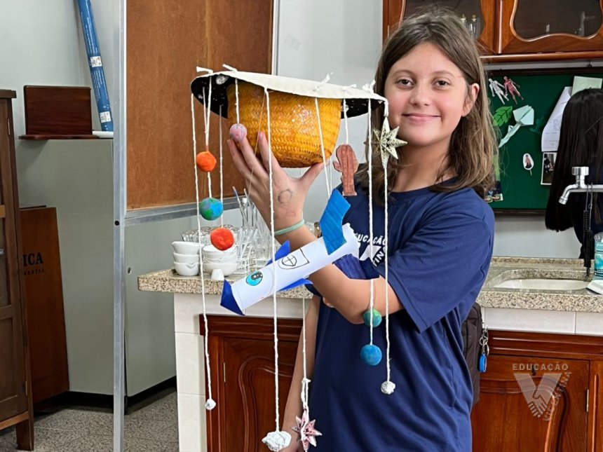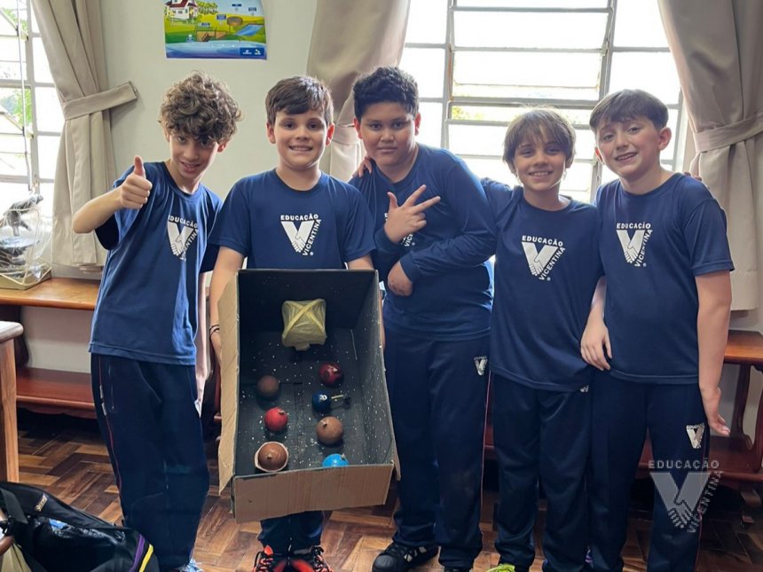 Pensando nisso, os estudantes do 6º ano A e B confeccionaram suas próprias maquetes do Sistema Solar.