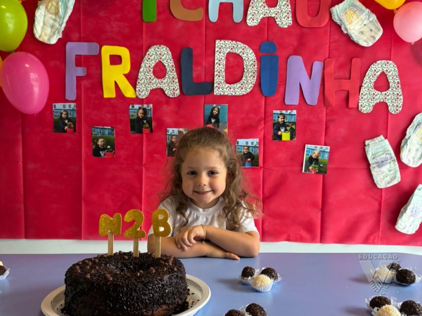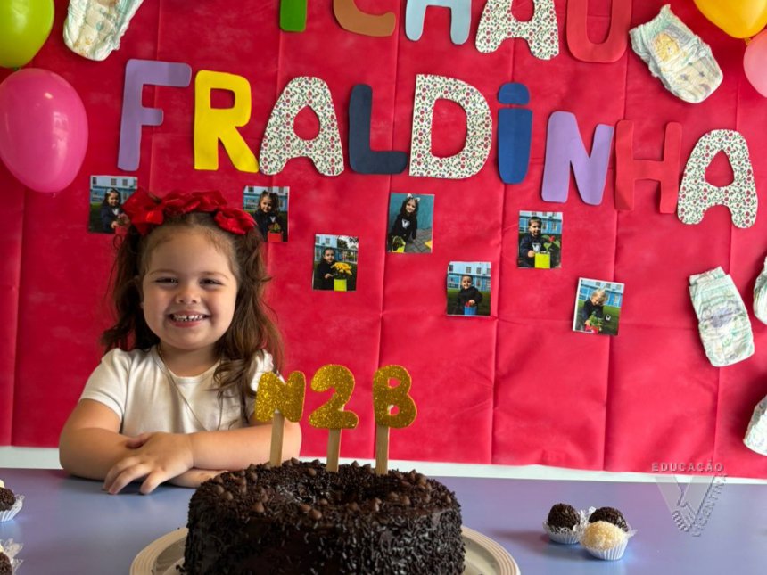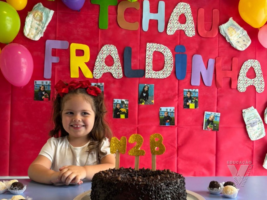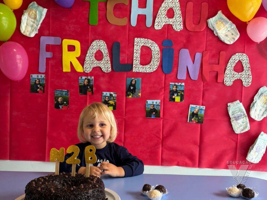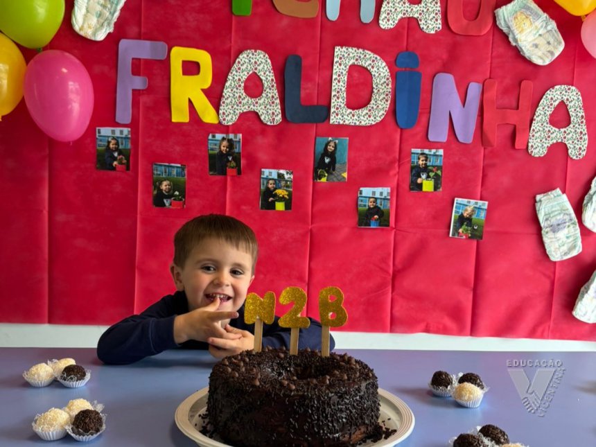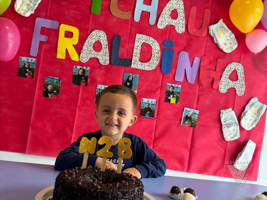 Para comemorar este momento tão importante, os estudantes do Nível 2B realizaram a festa: "Tchau Fraldinha"!