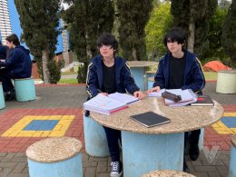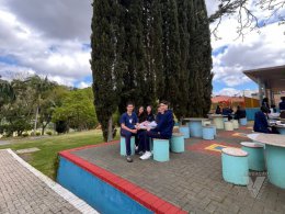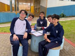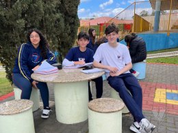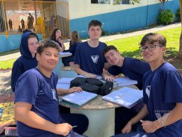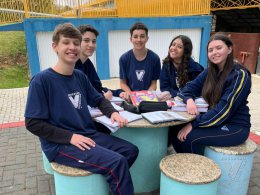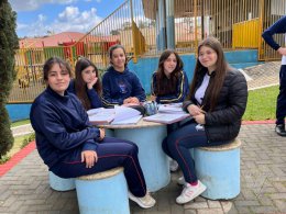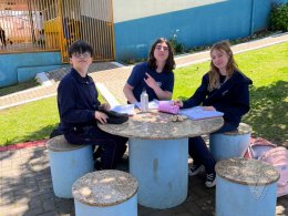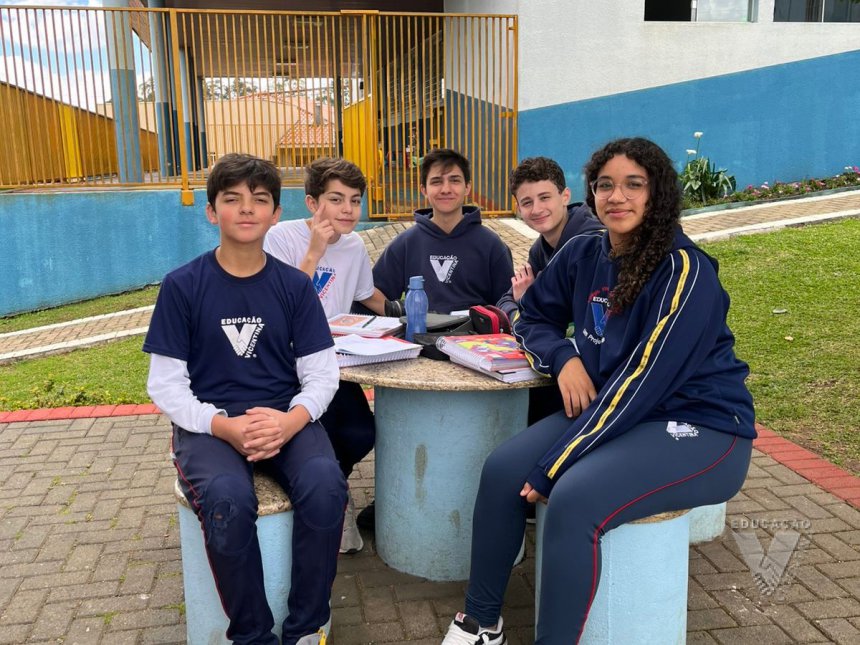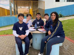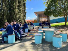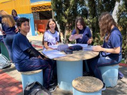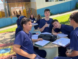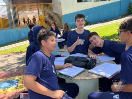 Os estudantes do 9° ano A e B realizaram atividades ao ar livre sobre o tema aprendido em sala de aula.