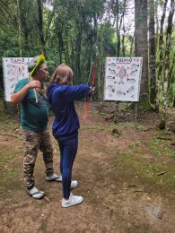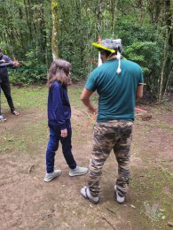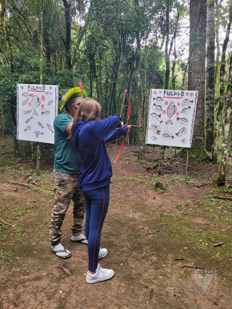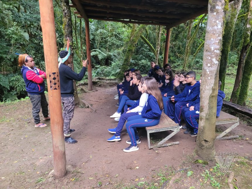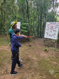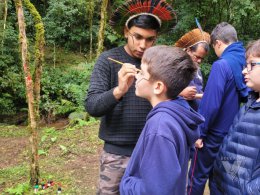 Em um ambiente no meio da floresta, as turmas tiveram uma palestra interativa com eles, abordando temas que retratavam seu modo de vida, suas dificuldades, o respeito à diversidade cultural, bem como o convívio, a preservação e dependência da natureza.